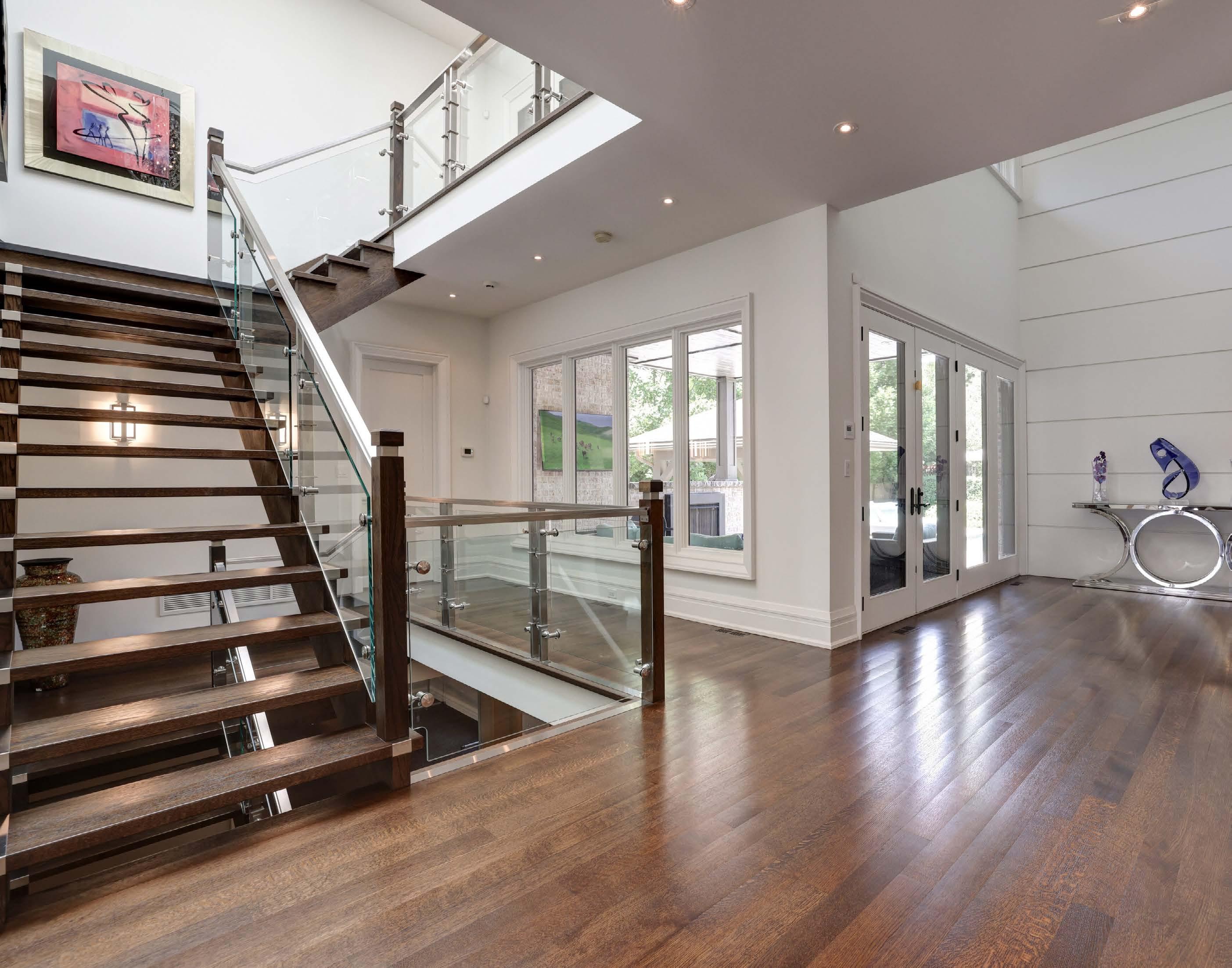 • New custom Stainless Steel and Glass staircase, entire replacement from the lower level to second level including the balcony railing (heatstrengthened glass)