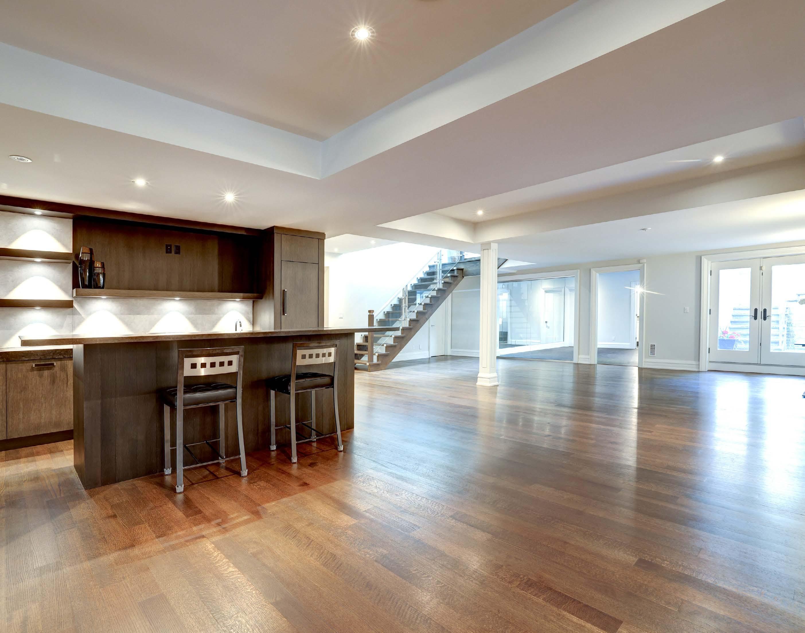 recreation room with wet bar, wine cellar and walk-up to backyard