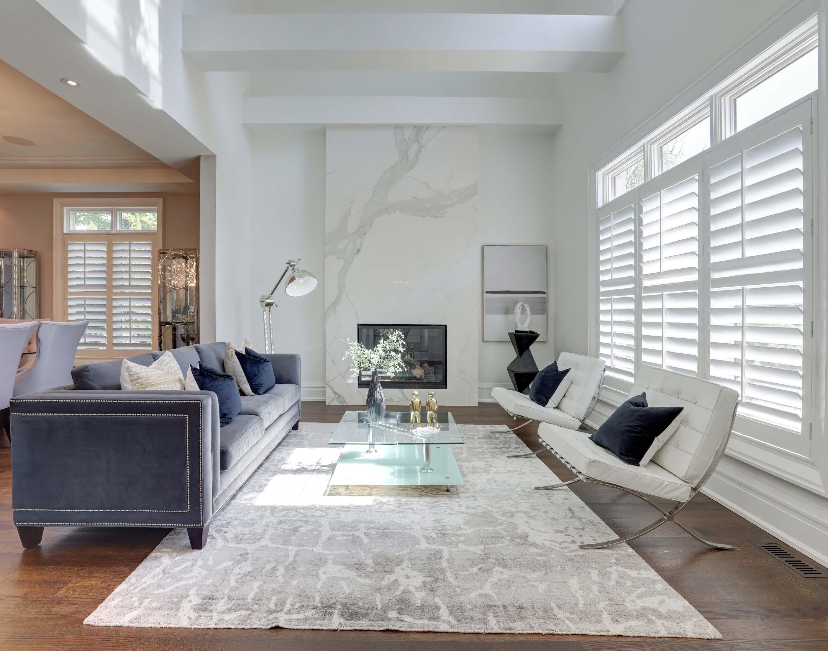 • Floor to ceiling Calacutta fireplace in living room
