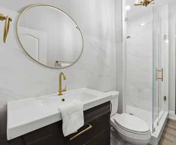 • Upgraded heated porcelain floor tiles and matching shower wall tiles