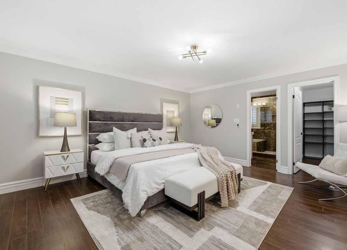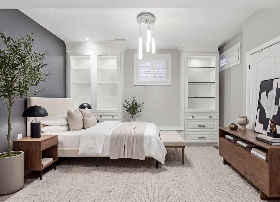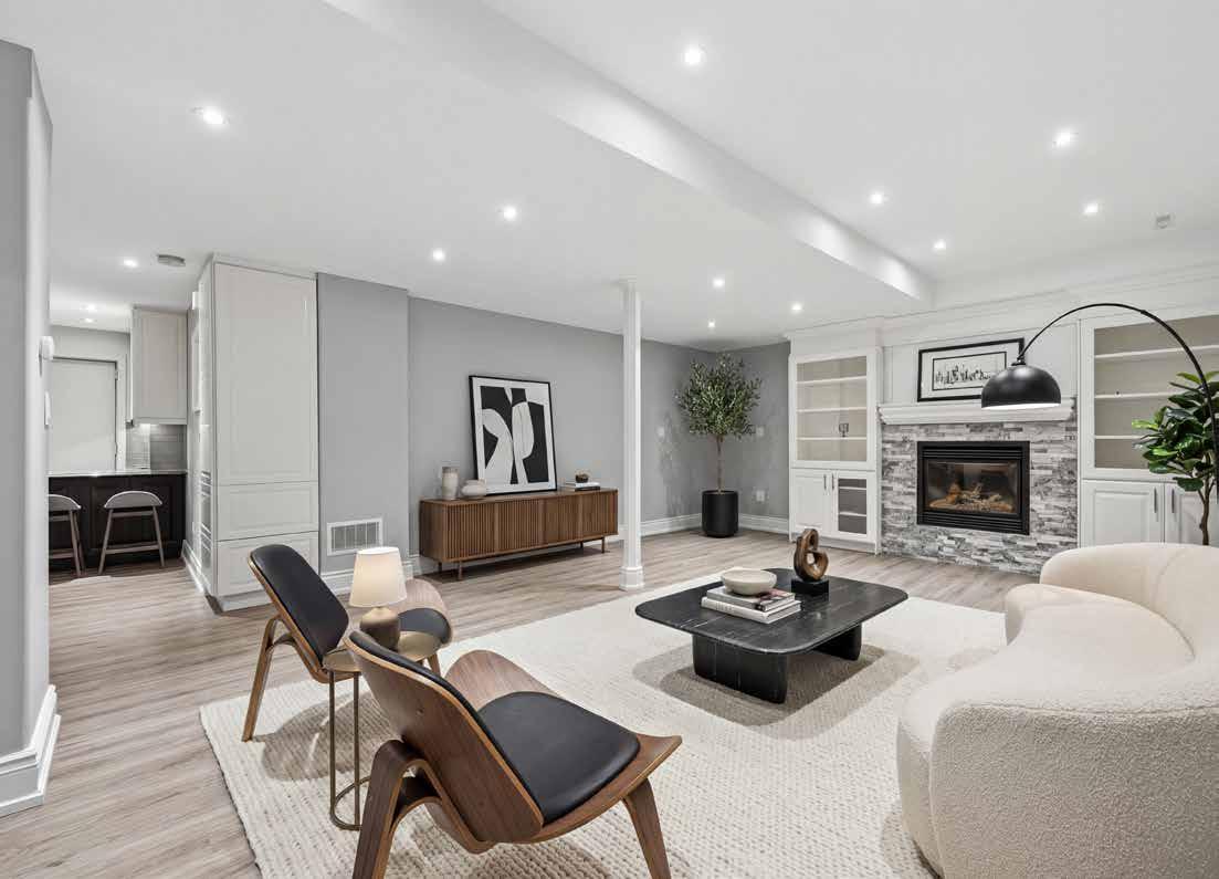 Upstairs, the tranquil primary suite overlooks the backyard retreat and features a luxurious marble-finished ensuite complete with a whirlpool tub and glass-enclosed shower. The finished basement adds exceptional versatility with 9-foot ceilings, a stylish recreation room, a custom wet bar, a fifth bedroom, and a contemporary three-piece bathroom, making it ideal for guests or extended family.