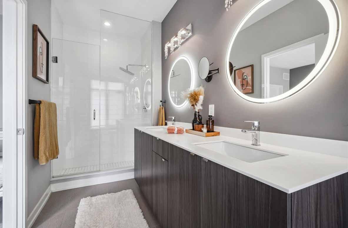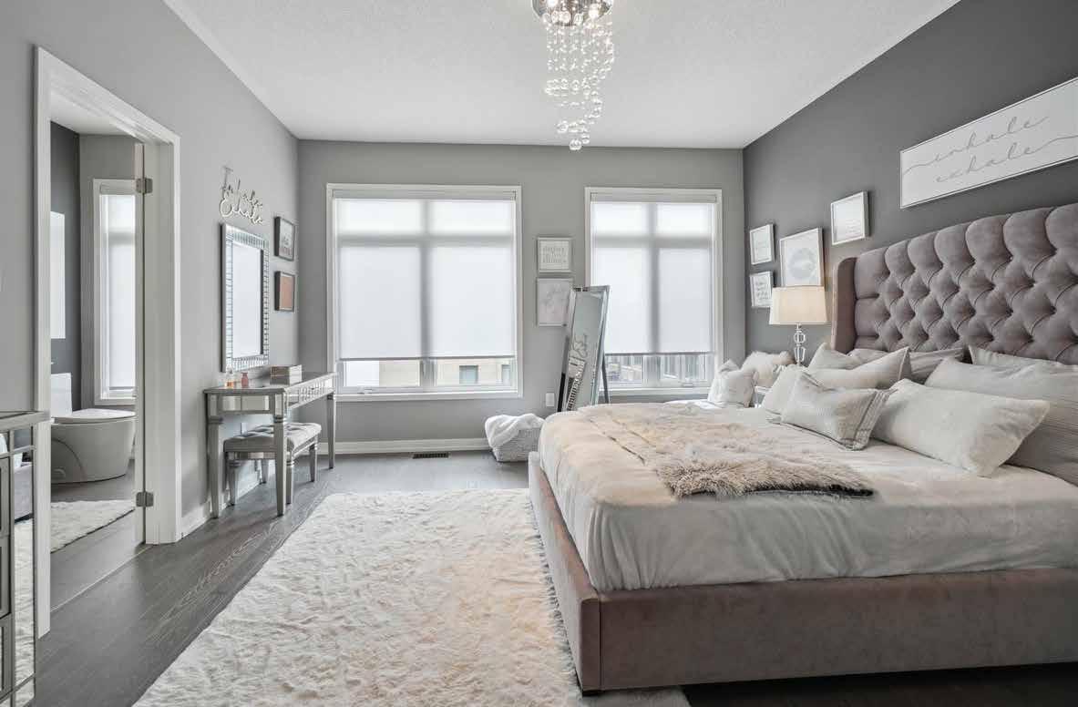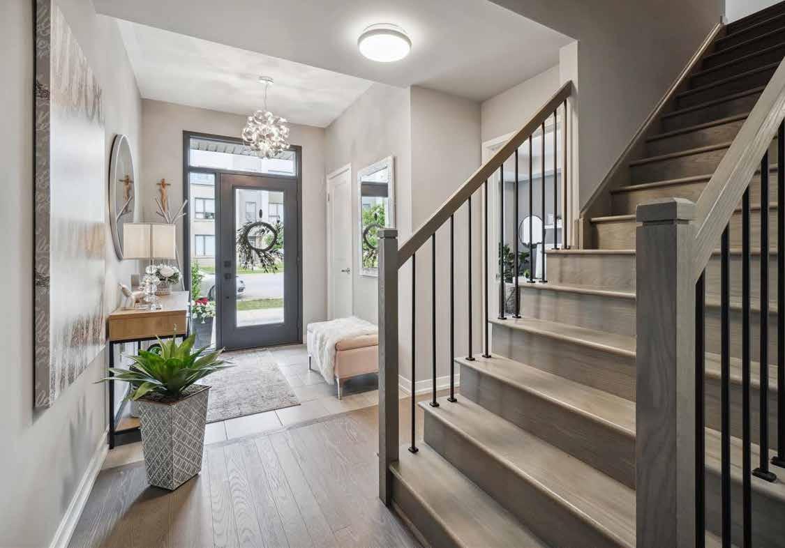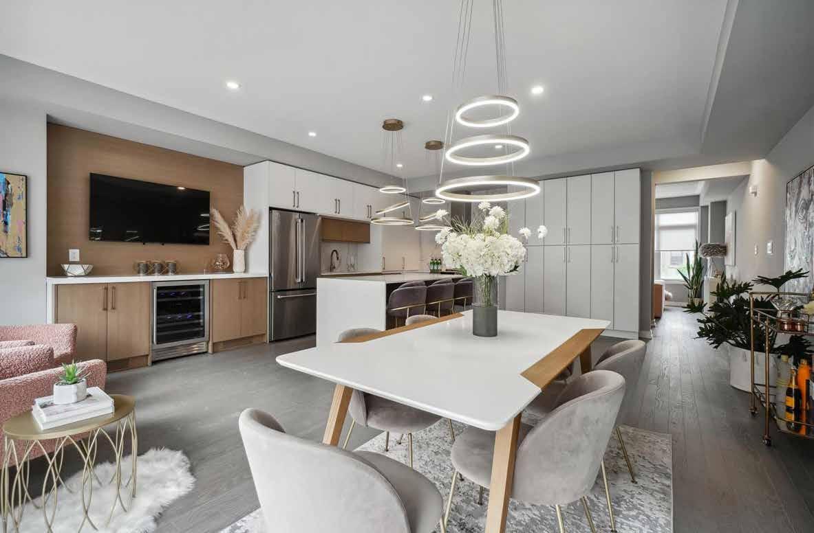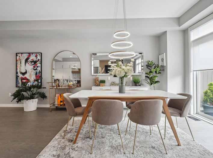 Welcome to this exquisite freehold townhouse in trendy north Oakville, offering 2,150 square feet of beautifully designed living space. Boasting four spacious bedrooms and three luxurious bathrooms, this home is fully upgraded with modern finishes that blend style and functionality. All three levels feature 9-foot ceilings, gray-ash hardwood floors, a solid oak staircase with iron spindles, oversized windows, and custom roller blinds. The 2nd floor presents an open-concept custom kitchen equipped with top-of-the-line stainless steel appliances, quartz countertops with trendy porcelain backsplash, a quartz waterfall island with a built-in microwave, custom cabinetry with built-in wine cooler, family/dining with walk-out to a spacious terrace, perfect for relaxing or entertaining. The 3rd floor presents a primary bedroom with a walk-in closet and 4pc en-suite, completed with two additional generously sized bedrooms and a main 4pc bathroom. Convenient 4th bedroom with 3pc en-suite is located on the main floor. The laundry room, with access to a two-car garage, provides convenience and storage. This townhouse is a rare find, combining sophisticated design with the practicality of freehold ownership. Located in a very safe and family-friendly neighbourhood, close to 403, 407, & QEW, schools, Oakville Hospital, restaurants, grocery stores, transit and parks. Don’t miss the opportunity to make this exceptional property your new home!