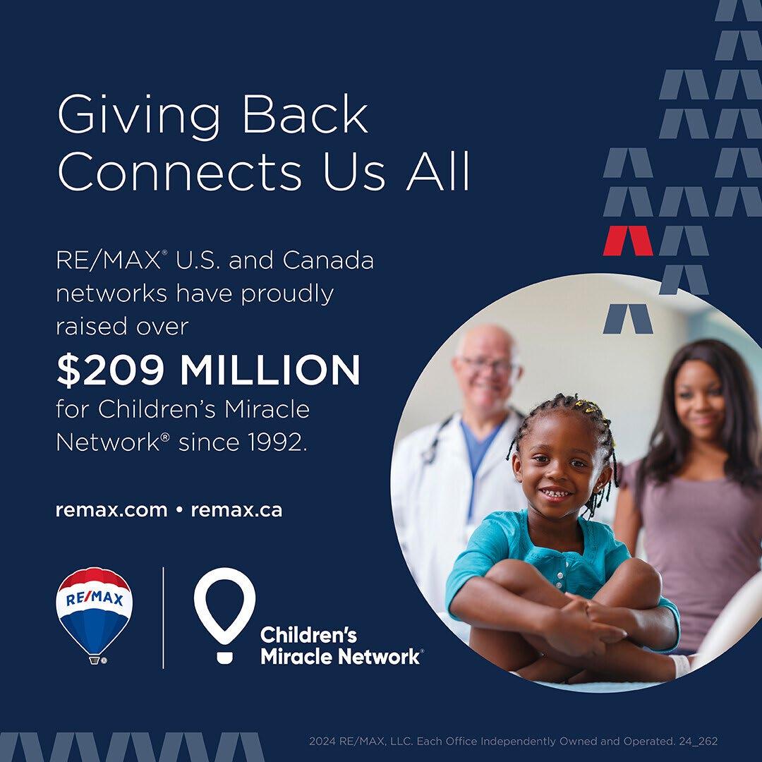 Since 1992, RE/MAX has worked to change kids’ health through their agents’ generous donations, creative fundraising events and more. Each year, thousands of RE/MAX Associates in the U.S. and Canada support their local children’s hospital.