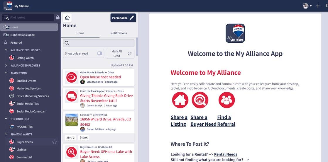 RE/MAX Alliance has not only invested heavily in its infrastructure to support its agents, it has outpaced the competition because we have the ability to hear from the best in the business—other RE/MAX organizations and our parent company, RE/MAX, LLC.
