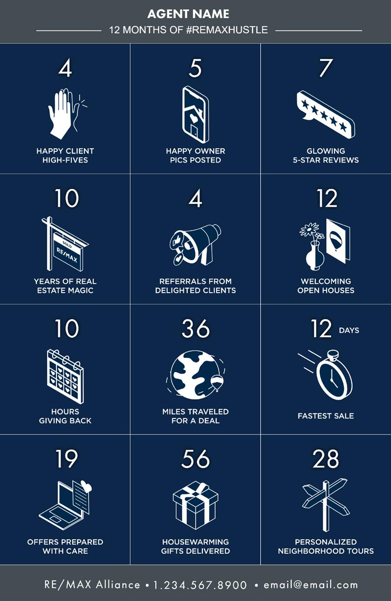 Start with professionally designed infographics and video, add in your business stats, and you have the latest marketing tools from RE/MAX.