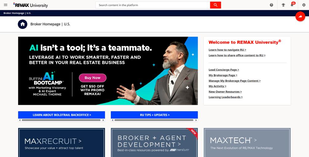 MAXCenter is your one stop shop for all things related to the RE/MAX brand -- where you can access the BoldTrail platform, RE/MAX News, and more!