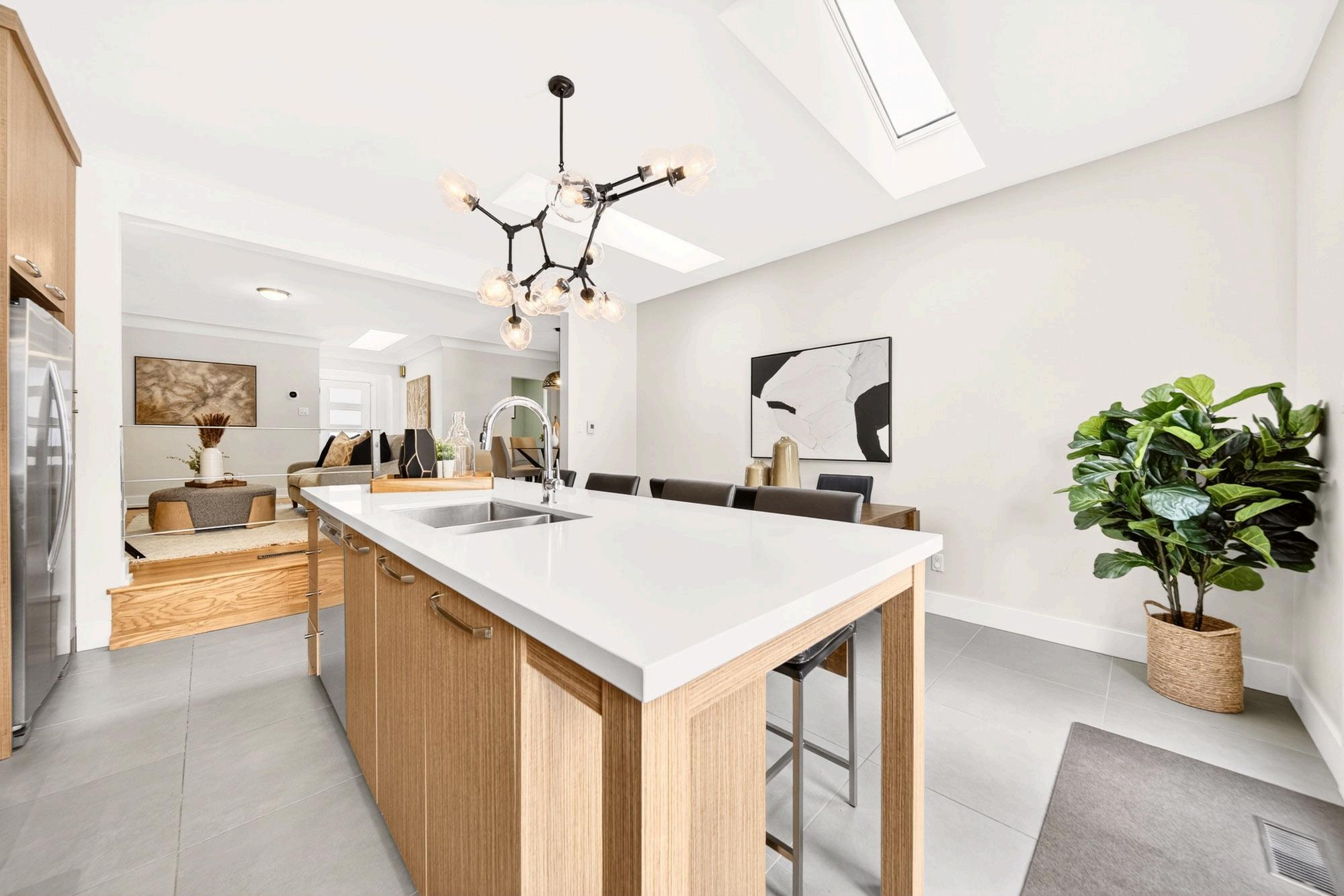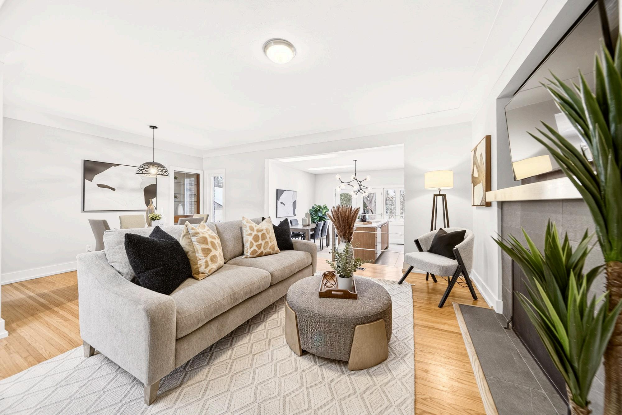 The foyer is spacious and highlighted with sun filled skylights that flood the space with natural light, creating a bright, welcoming first impression With loads of recent upgrades and renovations, this bungalow provides over 2,600 square feet of finished, curated living space Cook family dinners with the kids in your gourmet eat-in kitchen amid two sun-drenched skylights, beautiful extended height cabinetry, large island with b/bar, convenient microwave drawer, upgraded lighting and double garden doors to your own private backyard oasis for alfresco dining It's designed for modern comfort and effortless entertaining.