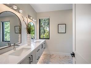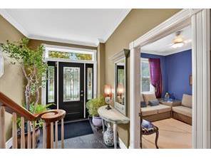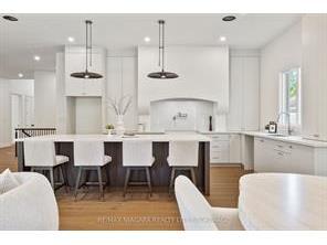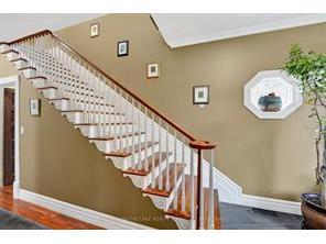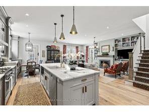 Completely transformed in 2018, this exceptional residence blends refined contemporary design with timeless character. Set on a quiet street and backing onto the Heritage Trail, the home offers a rare combination of privacy, sophistication, and thoughtfully curated living spaces. The main level was professionally redesigned to create an elegant and highly functional layout. At its center is a spectacular chef’s kitchen anchored by a striking nine-foot island, complemented by premium countertops, stainless steel appliances, and abundant custom cabinetry. The kitchen flows seamlessly into an inviting family room, creating the perfect space for both everyday living and effortless entertaining. A formal dining room extends from the kitchen for more intimate gatherings, while the front living room provides a refined retreat complete with an open-hearth gas fireplace. The home’s dual-aspect windows flood the interior with natural light, highlighting the sophisticated finishes and cohesive design throughout. Upstairs, generously proportioned bedrooms offer comfort and privacy, including a beautifully appointed primary suite featuring a spa-inspired ensuite with contemporary fixtures. For modern convenience, the laundry room has been thoughtfully relocated to the second floor. The fully finished lower level expands the home’s versatility with a private bedroom featuring an egress window and stylish three-piece ensuite, along with a spacious family room, a den ideal for a home office or gym, and a large furnace room providing excellent storage. Beyond the automatic gated driveway lies a professionally landscaped, fully fenced backyard oasis. This serene outdoor space features multiple seating areas designed for both relaxation and entertaining. Enjoy quiet mornings with coffee, summer gatherings with friends, or unwind in the soaker pool. A heated she-shed offers a charming retreat, studio space, or additional storage. (Cut off)