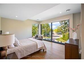 Experience the wonderful lifestyle of one of Niagara-on-the-Lakes most prestigious neighbourhoods, right in the heart of Old Town and just steps from where the Niagara River meets Lake Ontario. Sailing, golfing, parks, the marina, boutiques, fine dining, and world-class theatre are all nearby, immersing you in one of Canada's most celebrated communities. Designed by ACK Architects and custom built by Pym & Cooper, this modern masterpiece is surrounded by professional landscaping and blends striking architecture with refined details. A dramatic foyer with 20-foot peaked windows fills the home with natural light, setting the stage for open-concept living with 9-foot ceilings, engineered hardwood floors, and a sleek linear gas fireplace. Built-in speakers enhance atmosphere, while soundproof insulation adds privacy. The chefs kitchen with centre island features quartz countertops, tiled backsplash, and high-end appliances including Sub-Zero, Wolf, Miele, and Sharp. A beverage and coffee station with bar fridge and lighted cabinetry elevate the space, while a pantry wall with slide-out drawers adds everyday practicality. Upstairs, the primary suite impresses with 9-foot ceilings and 10-foot sliding doors to a long balcony offering seasonal river views through mature trees just a few doors away . A spa-inspired ensuite includes heated floors, a large glass shower, and a double vanity with under-cabinet lighting, complemented by a spacious walk-in closet ready for your custom design. Two bedrooms share a stylish bath with soaker tub and shower, while a laundry with LG appliances and cabinetry adds convenience. Other highlights include a chic powder room with concrete sink, extensive pot lighting and hardwired blinds, pre-wiring for security, an open staircase to the unfinished lower level with roughed-in bath, and direct access to the high-ceilinged garage with LiftMaster opener. This home is a rare find - modern luxury surrounded by natural beauty and a timeless history.