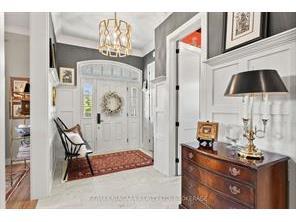 Located in the prestigious Old Town of Niagara-on-the-Lake, this exceptional bungalow offers a rare opportunity to indulge in luxury living at its finest. Set on a picturesque 62x168 lot surrounded by mature trees, this 2,285 sq. ft. home features 3 spacious bedrooms, 3 beautifully appointed bathrooms, and an oversized double-car garage. Step inside and be captivated by the soaring 13-foot ceilings in the foyer, elegant 10-foot ceilings throughout the main level, and dramatic vaulted ceilings in the great room, enhanced by seamless beams that add warmth and architectural character. At the heart of the home, a stunning stone interior gas fireplace serves as a focal point, blending rustic charm with modern sophistication. The custom-designed kitchen is a chef's dream, featuring high-end cabinetry, a striking oversized custom hood fan, and top-tier finishes that combine style with functionality. A formal dining space offers the perfect setting for entertaining guests or enjoying intimate family dinners. The master bedroom is a true retreat, featuring a tray ceiling, two generous walk-in closets, and a spa-like ensuite with premium finishes, designed for relaxation and comfort. Every detail has been thoughtfully curated, including rich hardwood flooring, tiled glass showers, 8-foot interior doors, wide hallways that enhance the sense of space and accessibility, and oversized black-framed windows that flood the home with natural light. This smart home also integrates modern technology for added convenience and security. Outside, the rear-covered deck provides a peaceful retreat, overlooking a lush backyard and a convenient garden shed for additional storage. This home combines timeless design, premium craftsmanship, and a highly sought-after location, perfect for those seeking elegance, comfort, and tranquility.
