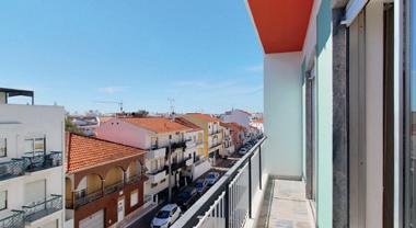 Apartamento T1 todo reno vado, com terraço privado frente cozinha e sala.
