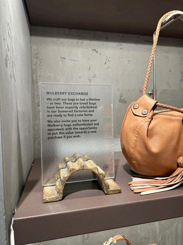 Offering a range of authenticated pre-owned Mulberry products through their official platform, supporting reuse and extending the life of their luxury items.
