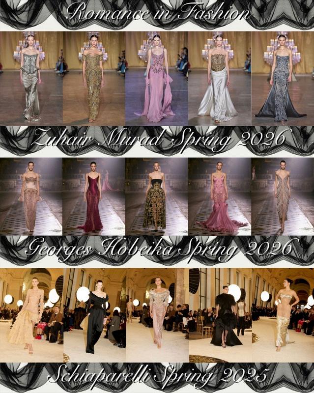 Identify romance and fantasy elements within fashion