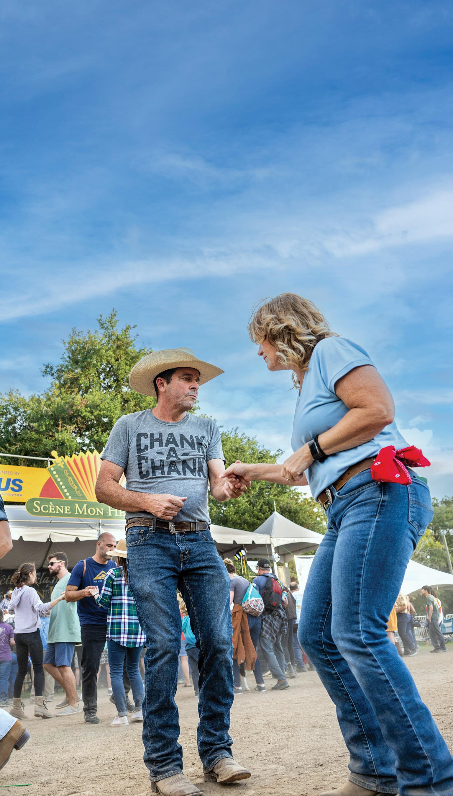The traditional chicken run features costumed riders who dance and chase chickens along the route, culminating with a fais-do-do and communal gumbo.