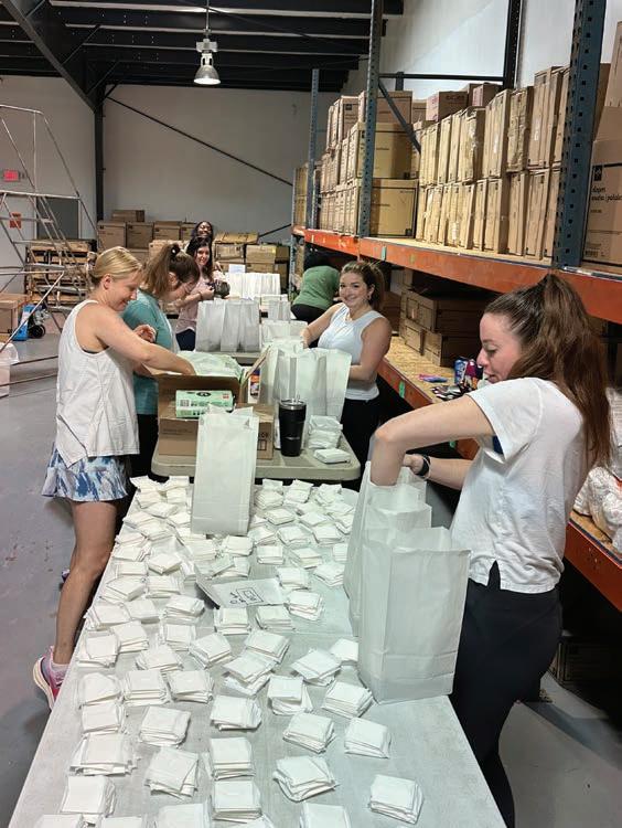 JLNO Members work hard into the night to get period supplies unloaded and ready to pack into supply kits during volunteer shifts. Photo by Kendra Reade