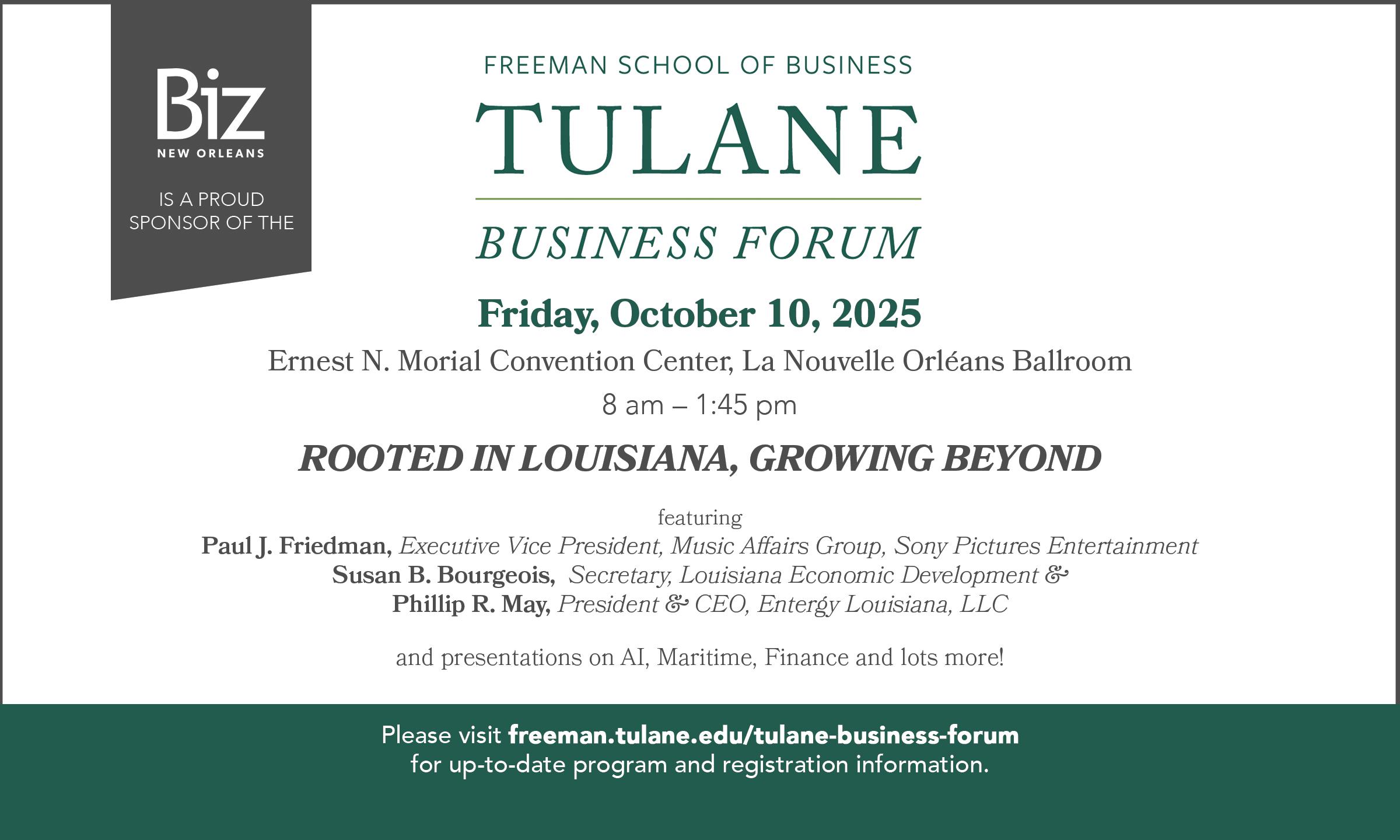 One thing that’s exciting me right now is talking to so many incredible local leaders on our weekly BizTalks podcast! Just a few of our recent episodes have included a chat with the new CEO of the convention center on his vision for this tourism powerhouse and a check in with the head of the Louisiana Restaurant Association to find out whether we should be concerned about the future of our critical restaurant industry. Check out BizTalks wherever you get your podcasts, or online at BizNewOrleans.com which, I’m so excited and proud to share, took home the title of “Best News Website” at this year’s Press Club of New Orleans Excellence in Journalism Awards. As always, thanks for reading (both in print and online)!