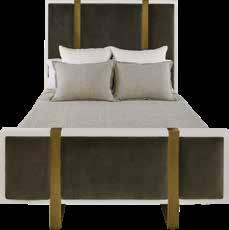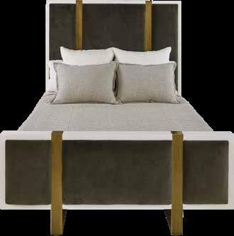 Enhance your sleeping quarters with a contemporary Mercer bed. Aged brass banding and a rich dark grey velvet upholstery adds textural appeal to your slumber. Villa Vici, villavici.com.