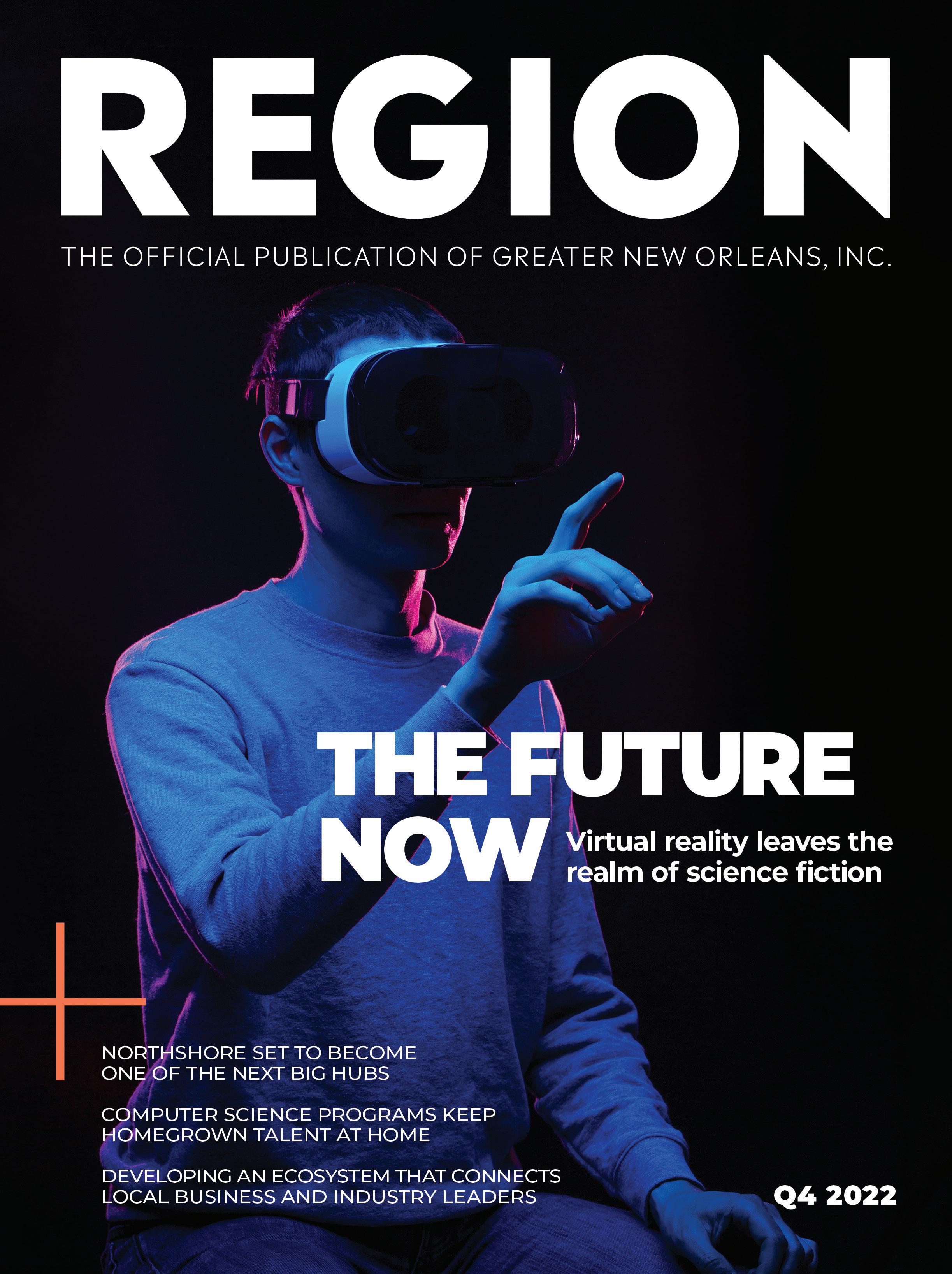 Welcome to the Q4 issue of REGION Magazine! Southeast Louisiana has long been a prominent source of innovation across leading industries. Today, companies are using these sensibilities alongside the tools of tomorrow to improve the processes of yesterday. Virtual reality is being used by companies around the region to develop and deploy training programs that allow participants to learn how to safely use complex industrial equipment from the comfort of a classroom or office. This industrial metaverse will change the workforce pipeline in a scalable and sustainable way.