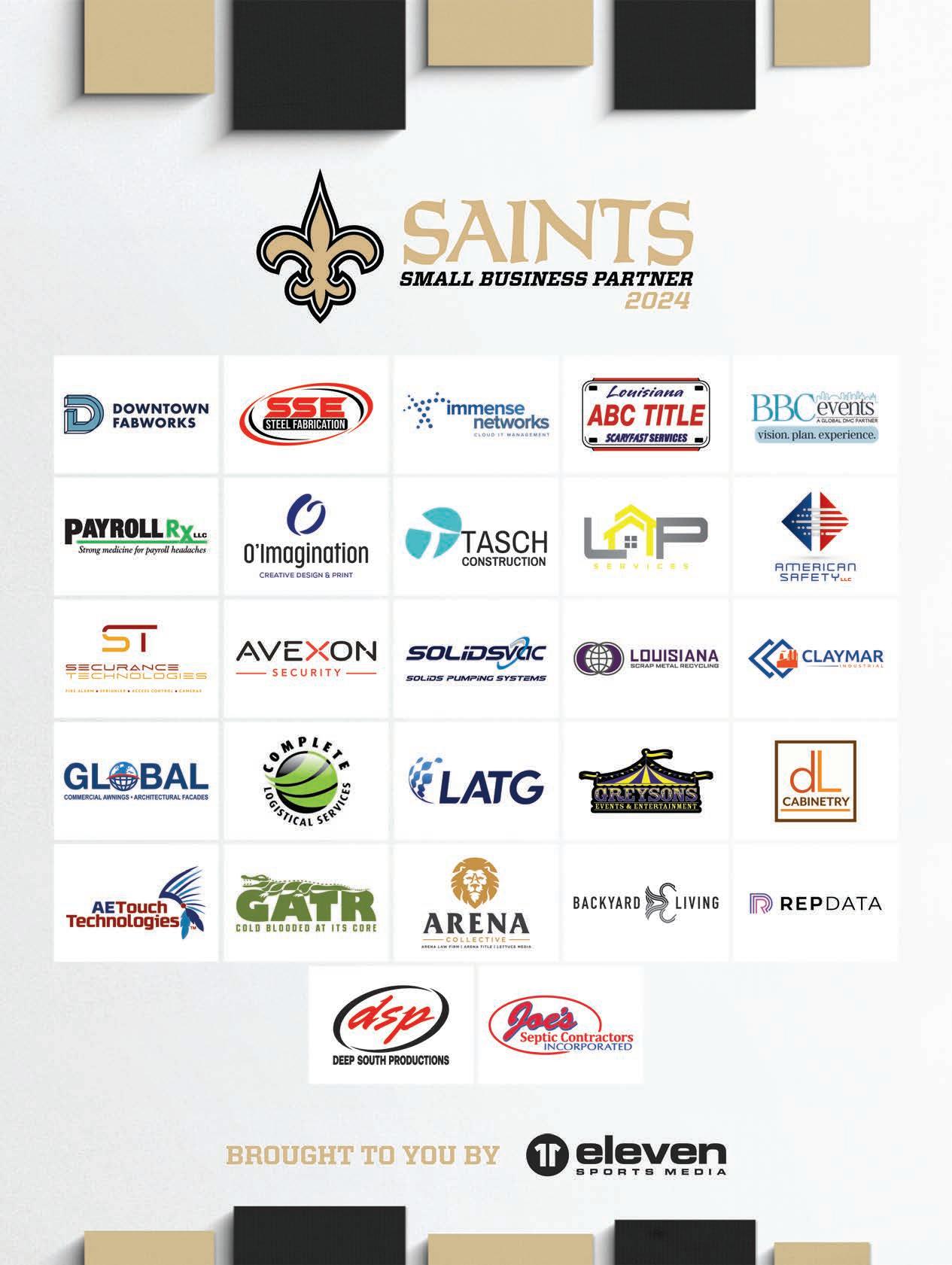 To sell or purchase programs call John Holzer at (504) 830-7244. The 2024 New Orleans Saints Gameday is produced for the New Orleans Saints by Renaissance Publishing, LLC, 110 Veterans Boulevard, Suite 123, Metairie, Louisiana, 70005, (504) 828-1380 MyNewOrleans.com | BizNewOrleans.com