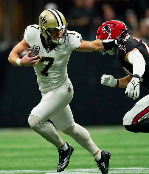quarterback Derek Carr completed 375-of-548 passes (68.4%) for 3,878 yards with 25 touchdowns to just eight interceptions and a 97.7 passer rating. Over the last six games, Carr was 131-of-176 (leaguebest 74.4 %) for 1,343 yards with an NFL-best 15 touchdowns, only three picks and a league-high 117.2 passer rating. The passing game was highlighted by further development from the second-year duo of Chris Olave and Rashid Shaheed. Olave led the team with 87 receptions for 1,123 yards and five touchdowns, and Shaheed caught 46 passes for 719 yards (15.6 avg.) with five scoring grabs.