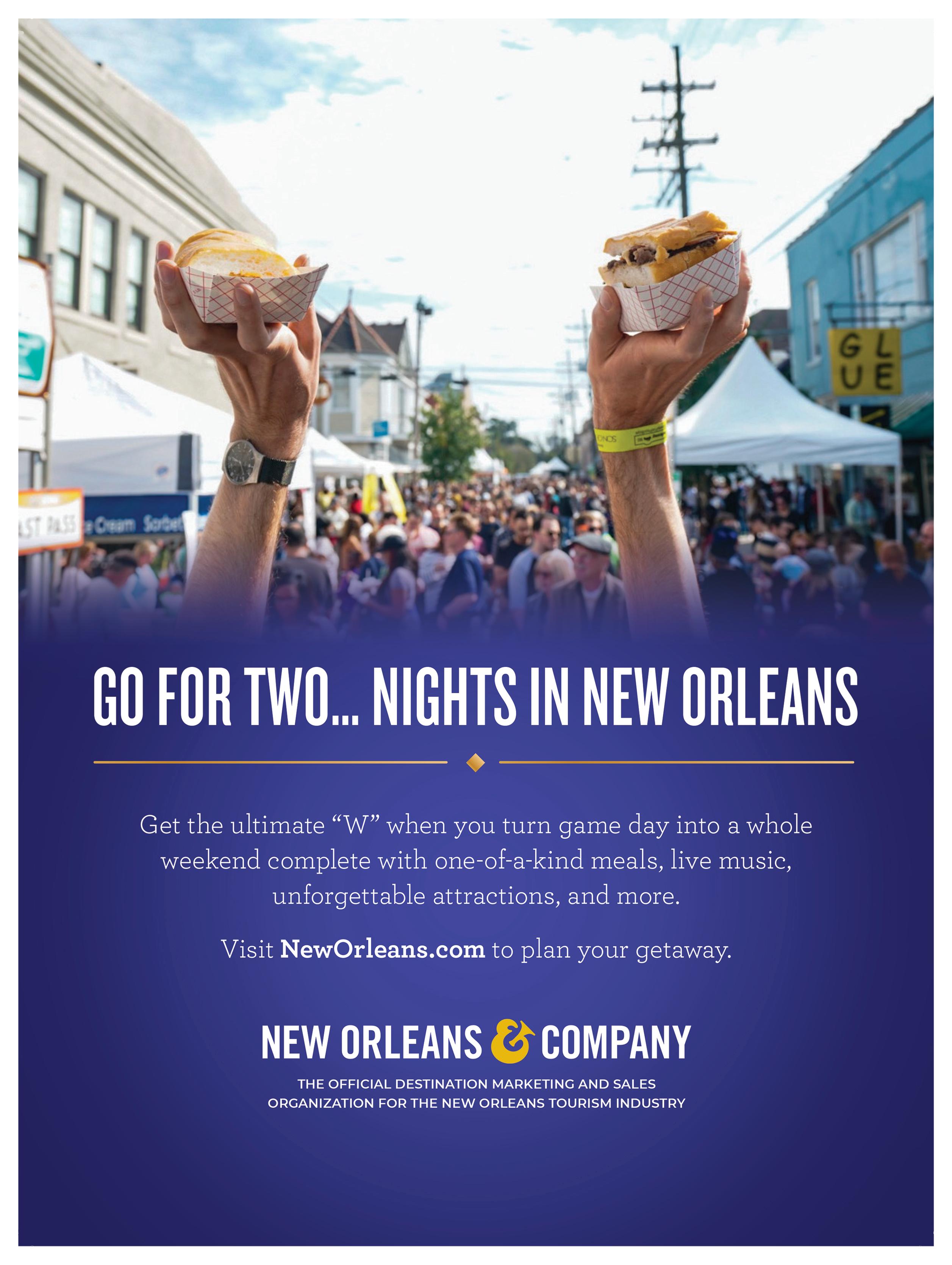 To sell or purchase programs call John Holzer at (504) 830-7244. The 2023 New Orleans Saints Gameday is produced for the New Orleans Saints by Renaissance Publishing, LLC, 110 Veterans Boulevard, Suite 123, Metairie, Louisiana, 70005, (504) 828-1380 MyNewOrleans.com | BizNewOrleans.com