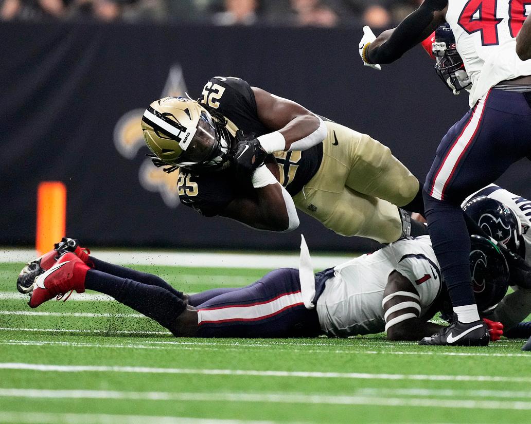 Saints running backs Mark Ingram II, Deuce McAllister and Alvin Kamara joined forces on the field prior to the start of the August 27 preseason finale against the Houston Texans to excite the home crowd. The trio are the franchise’s most-decorated running backs. Ingram, one of the team’s two first round draft picks in 2011, is the franchise’s all-time leader in rushing yards (6,500) and rushing touchdowns (52) from his tenure in New Orleans from 2011-18 and 2021-22. Ingram will serve as an analyst for FOX Sports’ College Football Pregame Show coverage. The versatile Kamara, the 2017 Associated Press Offensive Rookie of the Year and a five-time Pro Bowl selection, is tied with wide receiver Marques Colston as the franchise’s all-time touchdown leader (72) and ranks second in team record books behind Colston (9,766) in total yards from scrimmage (8,888). McAllister (6,096), a first round pick of the Saints in 2001 out of Mississippi and a two-time Pro Bowler, was the franchise’s rushing yardage leader from 2005 until 2021, when surpassed by Ingram, and is tied for second in club record books with Kamara in rushing touchdowns (49). He currently serves as the color analyst for WWL Radio for Saints games.