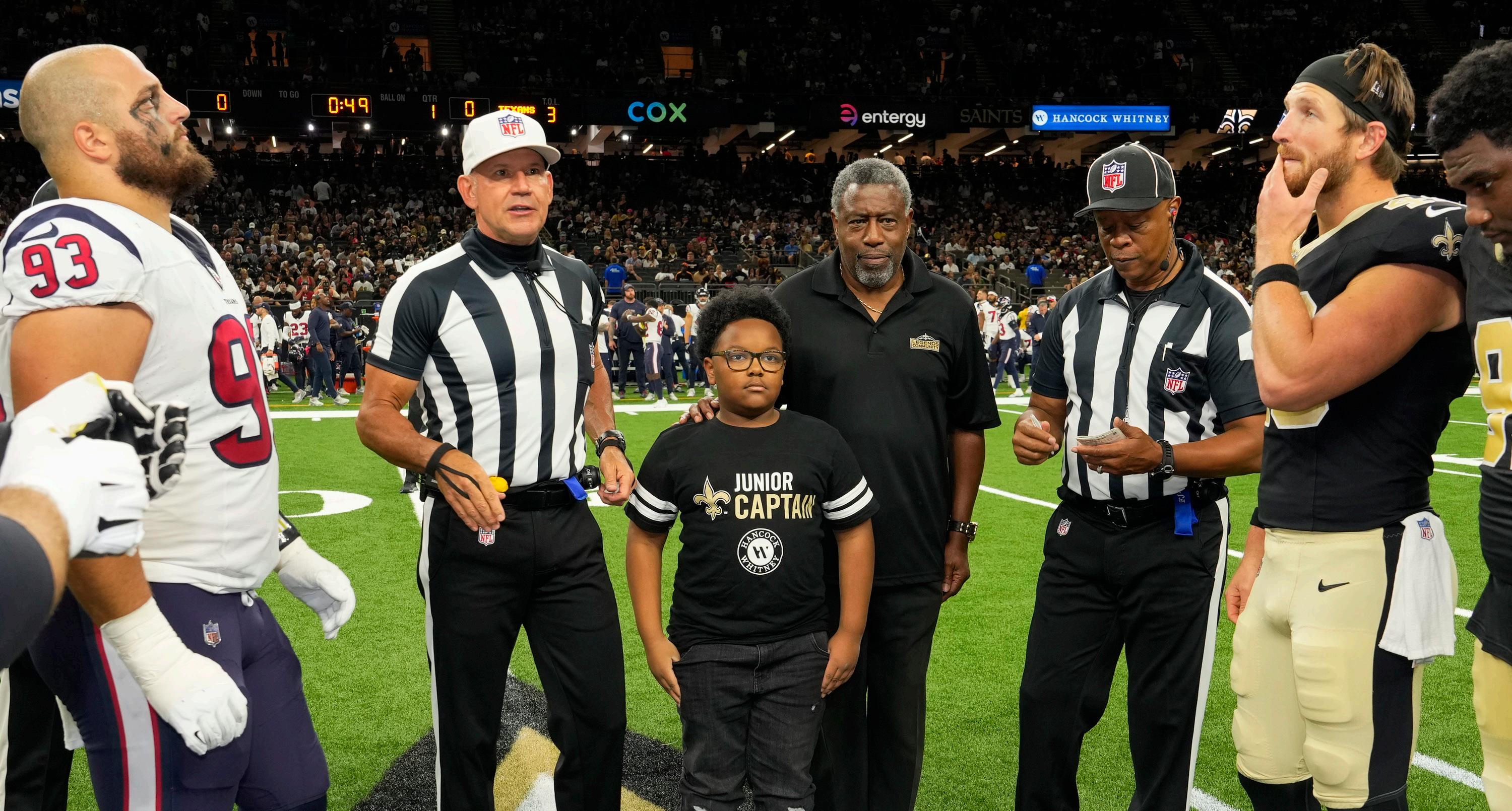 While mapping out their respective seasons once the NFL schedule was finalized in May, New Orleans Saints Head Coach Dennis Allen and Tennessee Titans Head Coach Mike Vrabel quickly agreed on the importance of honoring two legends who played for their respective teams, both excelling on special teams. Both legends are currently in a very challenging fight against the same enemy, ALS. It was easy for Allen and Vrabel to decide that their Week One captains would each have a special guest with them at midfield. Serving as today's honorary captains for the coin toss are Saints Legend, Steve Gleason, and Titans Legend, Tim Shaw.