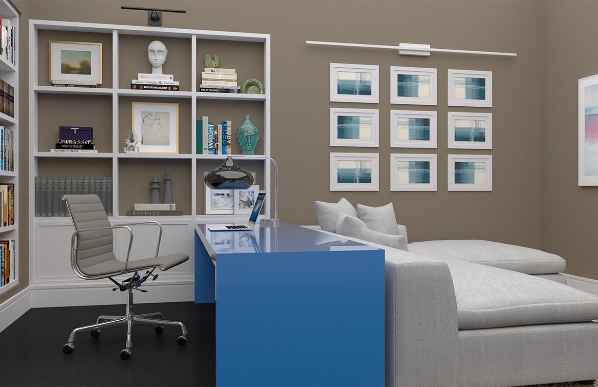 The basement was designed as a multi-functional space: office, hang-out area and guest bedroom with the sofacouch.