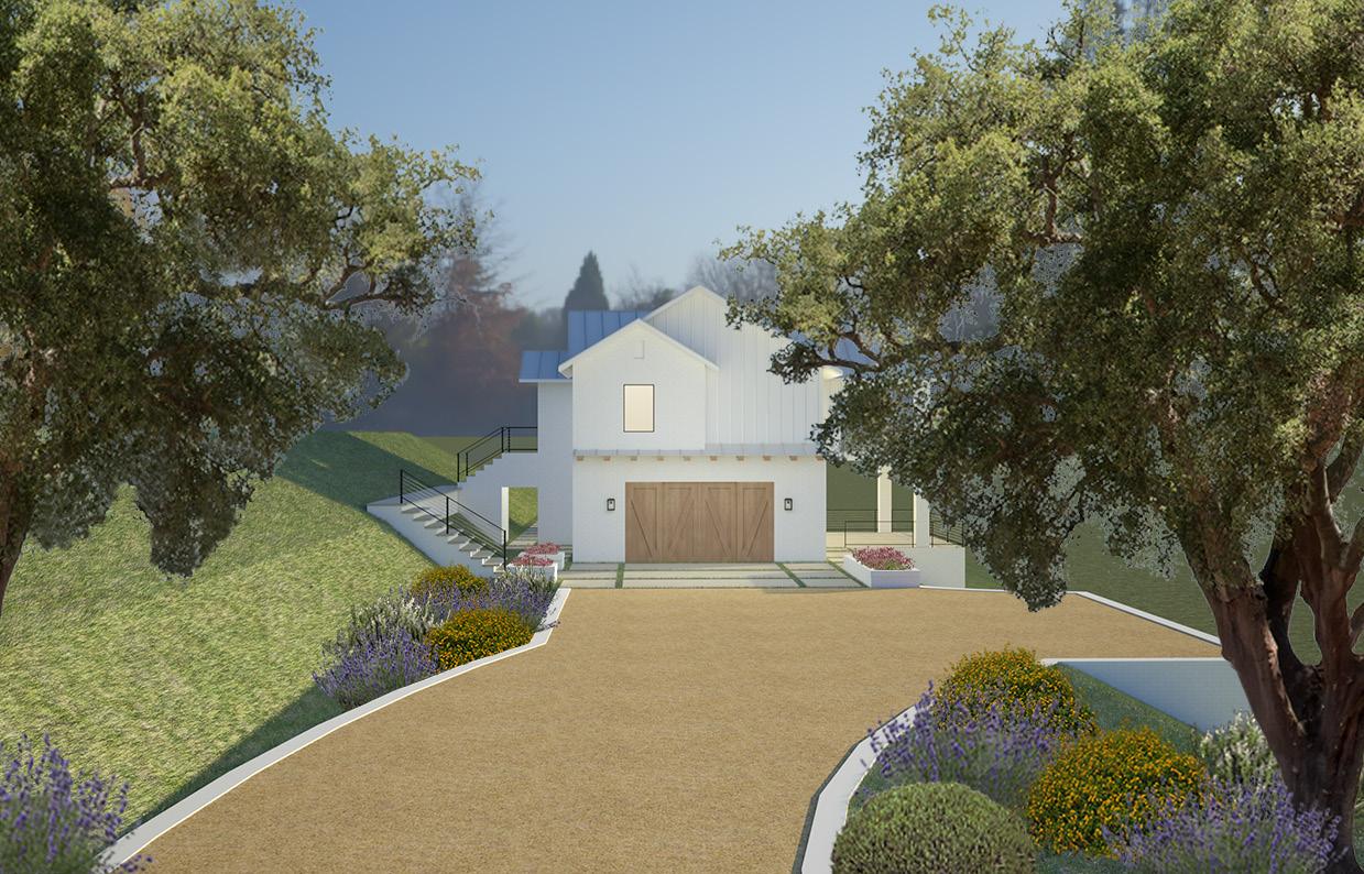Located in the beautiful countryside of Royal Oaks, California, the house went through a full exterior and interior re-design. A neutral palette was used to allow for the surrounding landscape — an oak forest and colourful flowers and bushes — to shine.