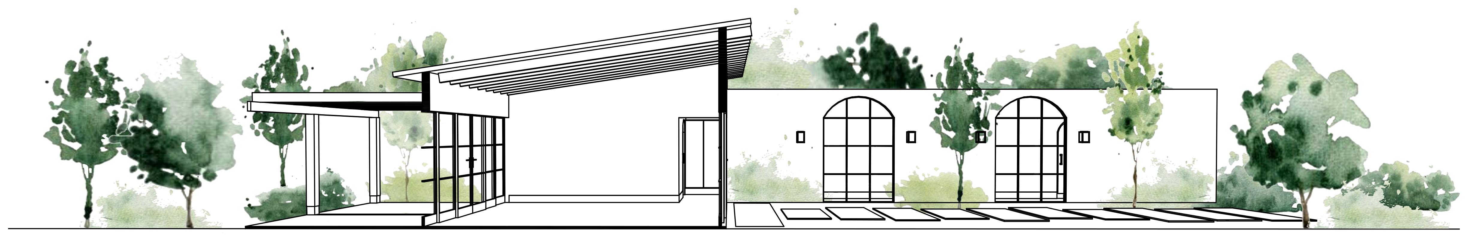 A dream home for a recently retired couple living in Victoria, British Columbia. A U-shaped layout was requested by the client to ensure the private and social areas were separated by a wild garden, which also served as the main entrance and an outdoor cinema space. Furthermore, the design includes arched windows, nooks and framed walls throughout the home to spotlight painting and sculptures — in tune with the client’s love for art and antiques.