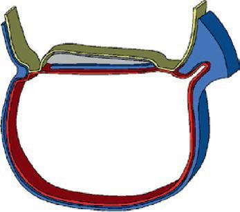 L'entoblaste (rouge) se divise en trois formations, une formation intra-embryonnaire à l'origine de l'intestin primitif, et deux formations extra-embryonnaires, la vésicule ombilicale et l'allantoïde (figure 1.20). L'intestin primitif se divise en trois zones, l'intestin primitif antérieur, l'intestin primitif moyen et l'intestin primitif postérieur. L'allantoïde se divise en deux formations, l'allantoïde intra-embryonnaire à l'origine de la vessie et l'allantoïde extra-embryonnaire à l'origine des cellules germinales primordiales.