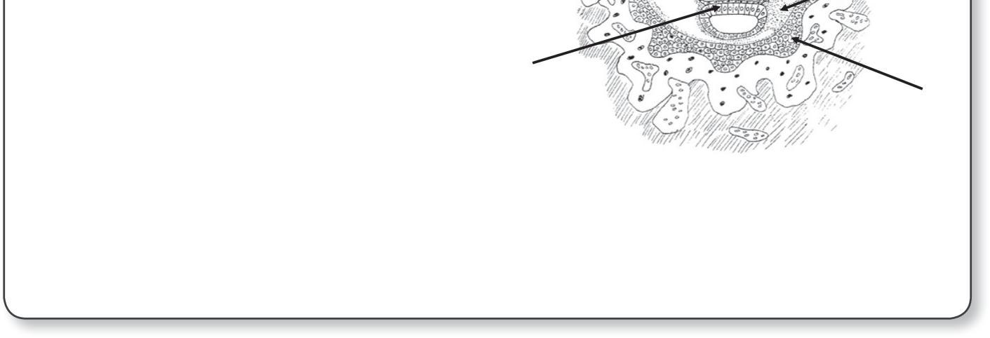 ■ L'arbre ontogénique permet de faire le lien entre les feuillets non différenciés qui se mettent en place lors de l'embryogenèse et les cellules différenciées des tissus. Il est enraciné sur les cellules souches totipotentes de l'embryon. Son tronc se divise en quatre branches correspondant à l'ectoblaste, au mésoblaste, à l'entoblaste et au trophoblaste. Les rameaux terminaux de l'arbre correspondent aux cellules différenciées de l'organisme.