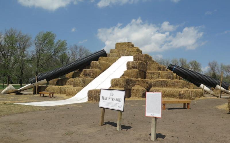 Large bales of hay form this gigantic hay pyramid and slide for young and old alike.