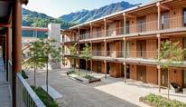 Zwei 3-geschossige Längsbauten mit 48 Wohnungen in Holzbauweise in Bellinzona Gilt als Holzbau-Pionierprojekt dieser Grössenordnung im Kanton Tessin