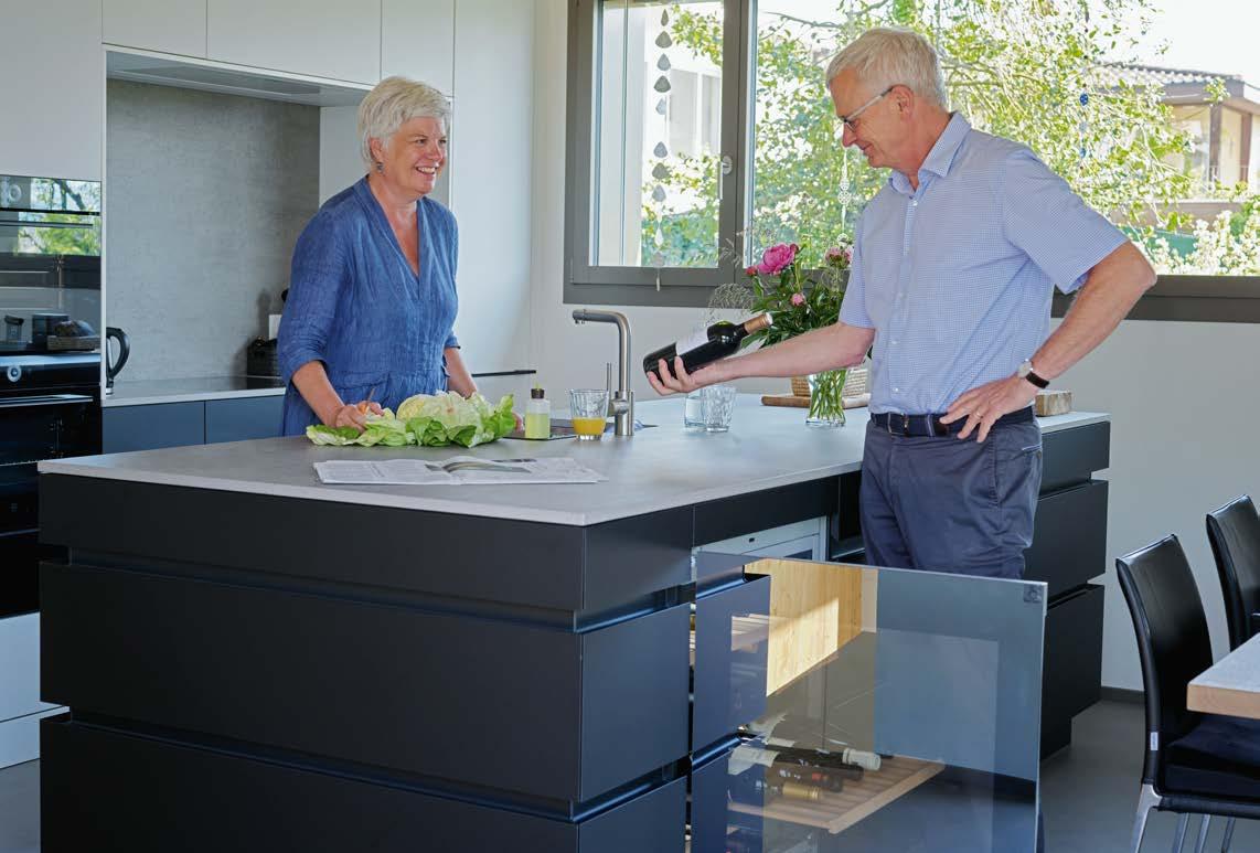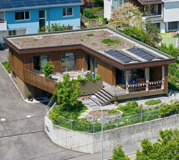 der Erdsondenheizung mit acht Sonden von je 180 Meter Länge ist auch so für klimaneutrale Energie gesorgt. Auf dem begrünten Flachdach sind zudem ein Monoblock für die kontrollierte Raumlüftung und Fotovoltaikmodule installiert.