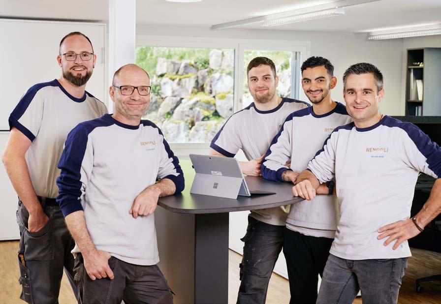 GENERATIONENWECHSEL. Wenn nach 100 Jahren die 5. Generation hochmotiviert das Zepter übernimmt, kann man mit Fug und Recht von einem nachhaltigen Familienunternehmen sprechen. v.l. Samuel, David, Andrea, Max und Micha Renggli.