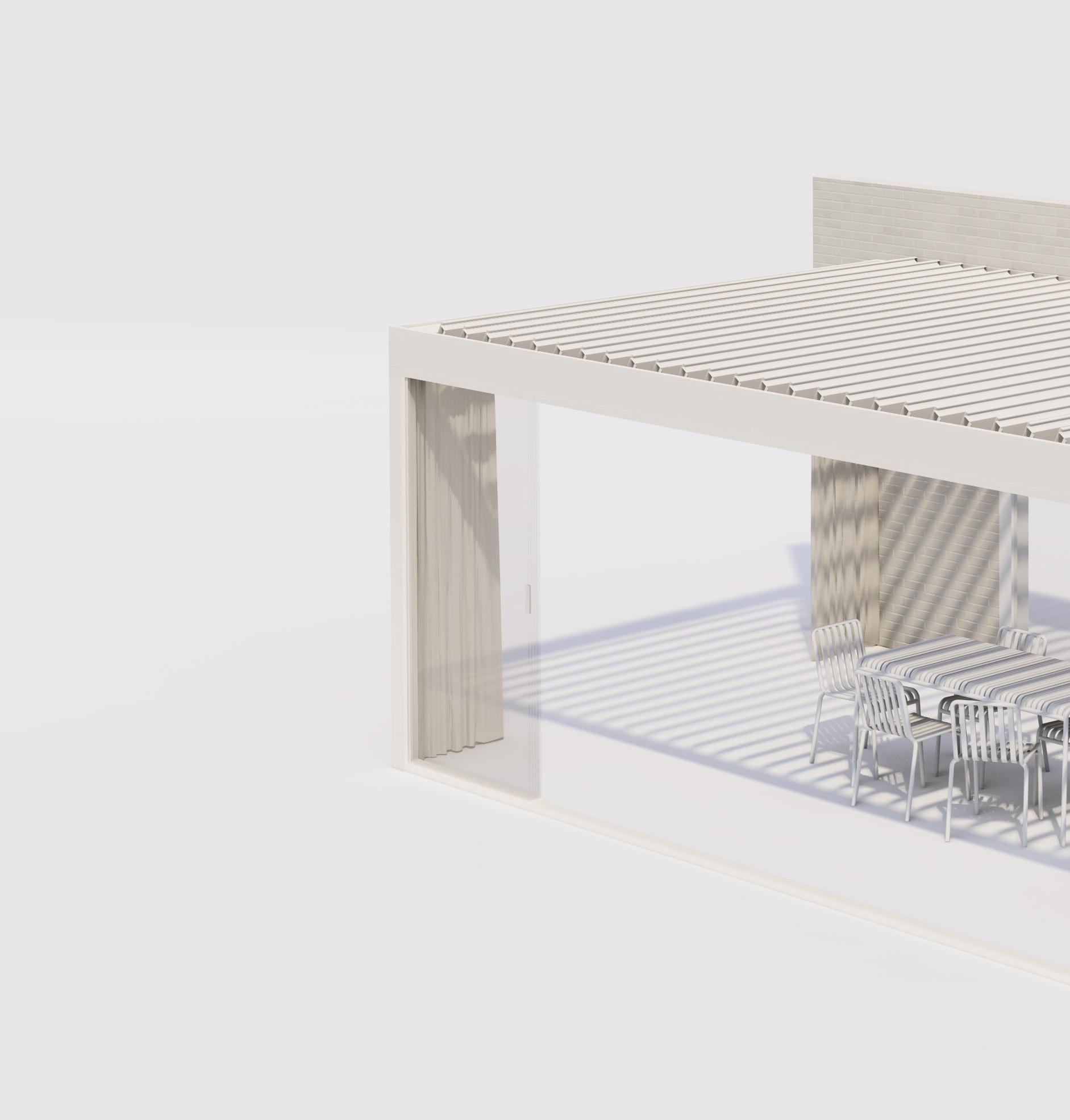 Go for a fixed roof or set the blades to close automatically with the first drop of rain. Choose side inserts that keep wind and rain at bay, and integrate heating wherever you want. Transforming Algarve into the perfect cocoon for every season is simple.