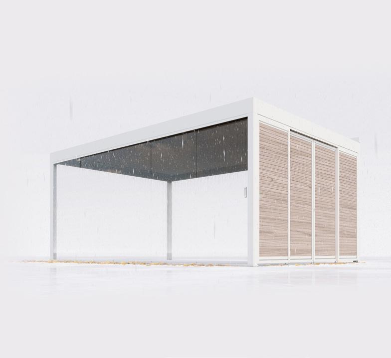 Choisissez un toit fixe ou laissez les lames se fermer automatiquement lorsqu’il pleut. Choisissez des élements latéraux qui vous protègent de la pluie ou du vent et intégrez le chauffage là où vous le souhaitez. L’Algarve devient ainsi votre cocon idéal en toutes saisons.