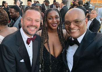 L-R CA Assemblymember Matt Haney, Carol H. Williams’ Creative Director Carol Hood, EBRHA CEO Derek Barnes—Bay Area Film Night’s Oscars in Oakland (Mar), High 5ive Rooftop Bar, Oakland