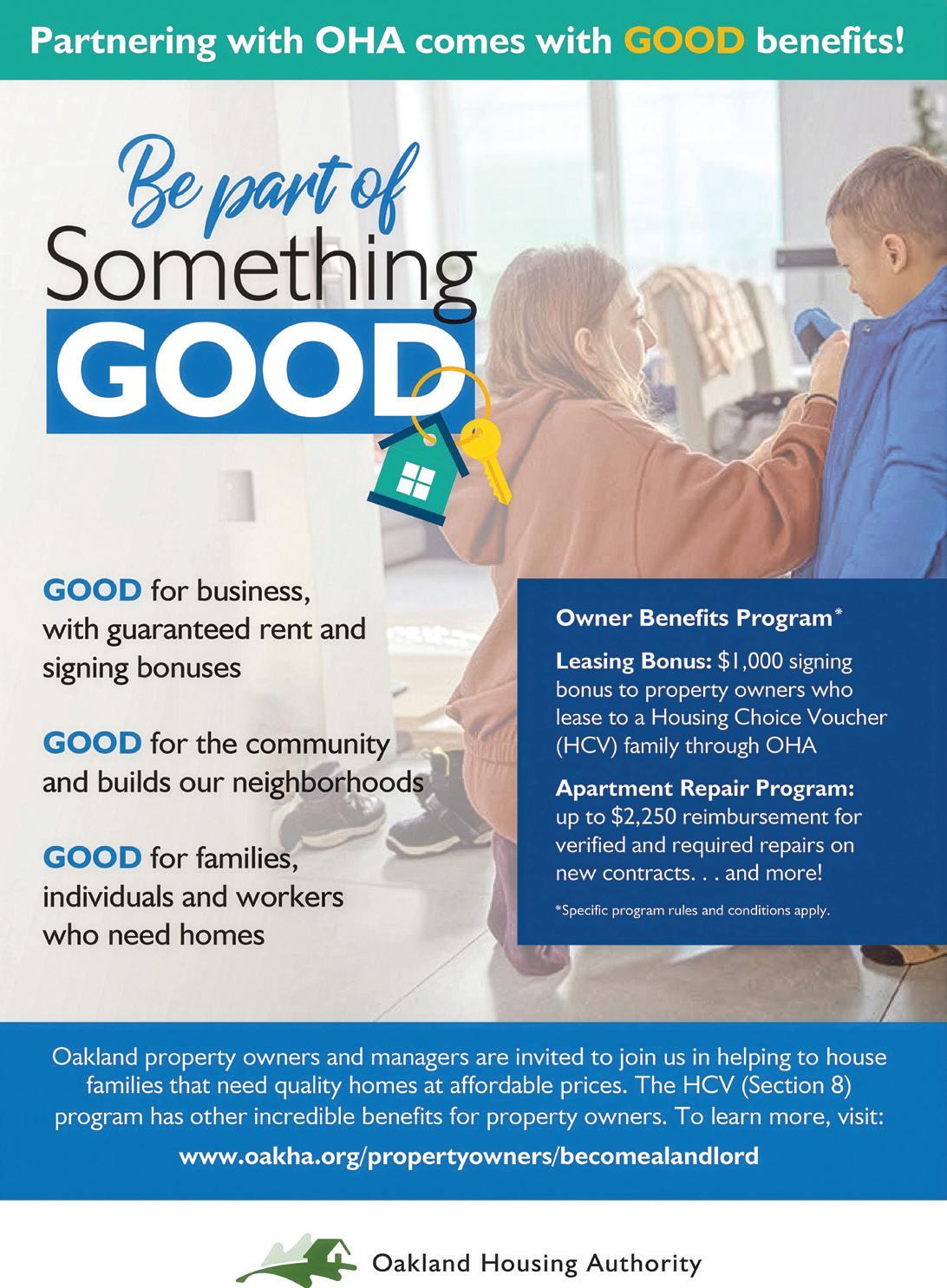 This issue is not all red flags and warnings. There is also momentum. Our cover and feature on women property owners reminds us that the future of East Bay housing is being shaped by leaders who bring resilience, business discipline, and relationship-centered management to the table. The piece on co-living, a twist on boarding homes and rooming houses of the past, shows that the market is adapting to different housing needs, forms and styles. Sometimes the “new solution“ is just a return to, or a remix of, an old one when the current system has priced people out of everything else. To address affordability pressures that traditional models fail to meet, renters and prospective homebuyers also need to adjust their housing requirements —paying more and getting less.