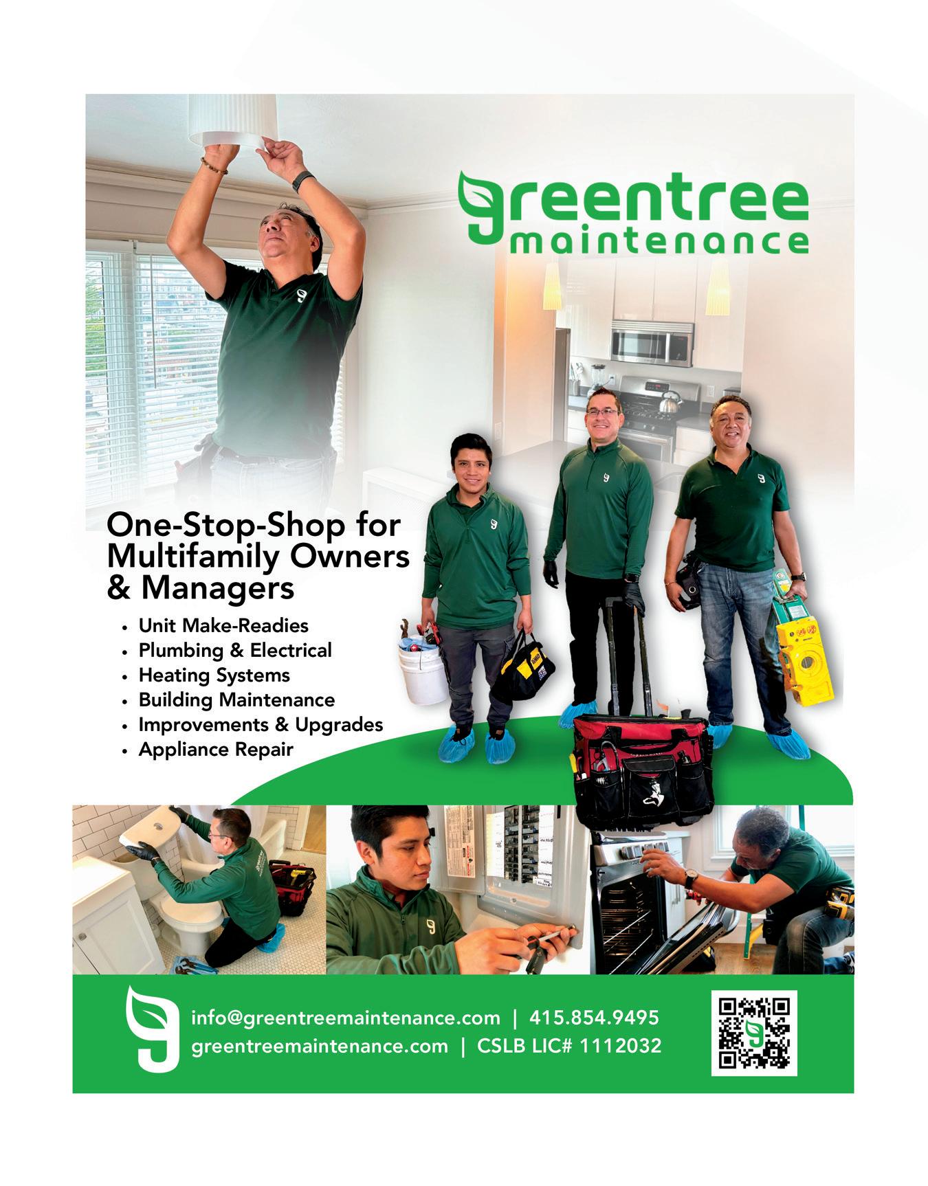 Great Escape Service and Inspections 415.566.1479 service@greatescapeservice.com Greentree Property Maintenance 415.854.9495 greentreemaintenance.com info@greentreemaintenance.com