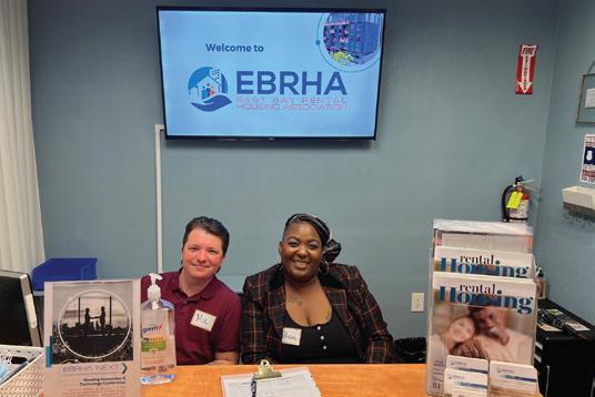 Rental Housing is not responsible for the return or loss of submissions or artwork. The magazine does not consider unsolicited articles. The opinions expressed in any signed article in Rental Housing are those of the author and do not necessarily reflect the viewpoint of EBRHA or Rental Housing This publication is designed to provide accurate and authoritative information in regard to the subject matter covered. It is sold with the understanding that the publisher is not engaged in rendering legal, accounting or other professional services. If legal service or other expert assistance is required, the services of a competent person should be sought. Acceptance of an advertisement by this magazine does not necessarily constitute any endorsement or recommendation by EBRHA, express or implied, of the advertiser or any goods or services offered. Published bimonthly, Rental Housing is distributed to the entire membership of EBRHA. The contents of this magazine may not be reproduced without permission. Publisher disclaims any liability for published articles. Printed by Bay Central Printing Company. ©2023 by EBRHA. All rights reserved.