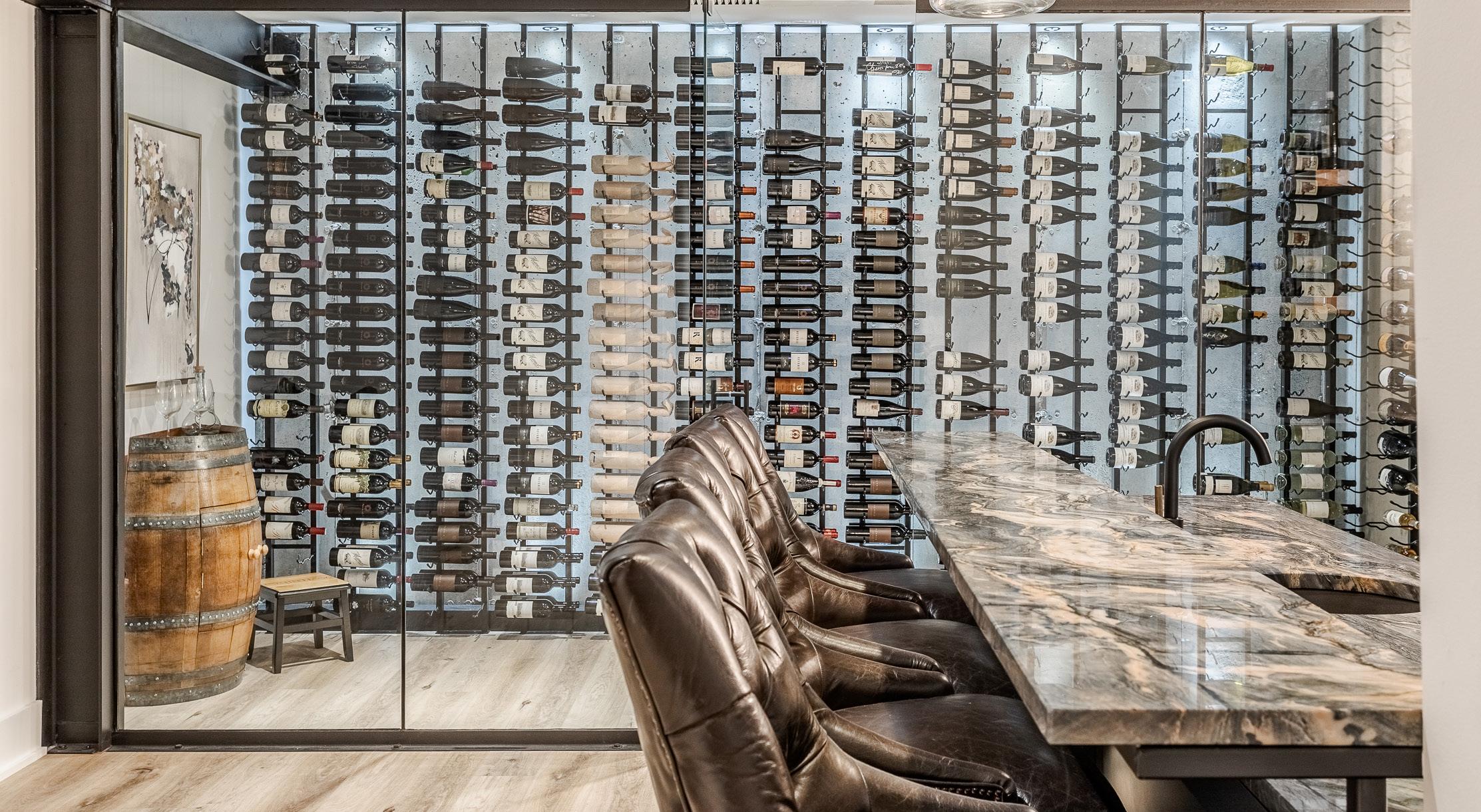 The stunning lower level boasts tall ceilings, a custom wine cellar and bar that is perfect for entertaining.