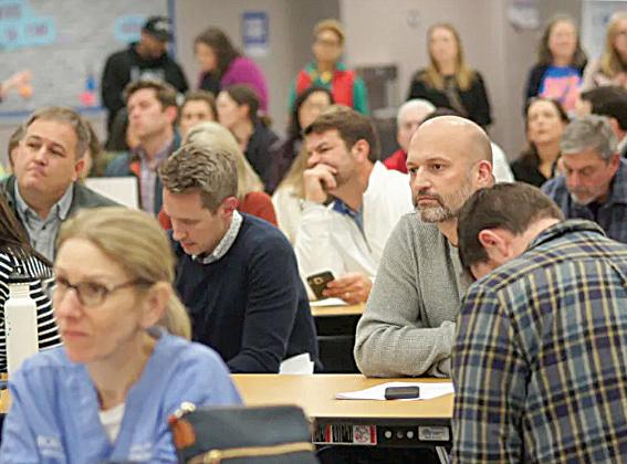 Parents of students in all Fulton County Schools elementary schools in Sandy Springs attended Monday night’s closure/redistricting meeting at Riverwood High School. (Photo by Bob Pepalis)