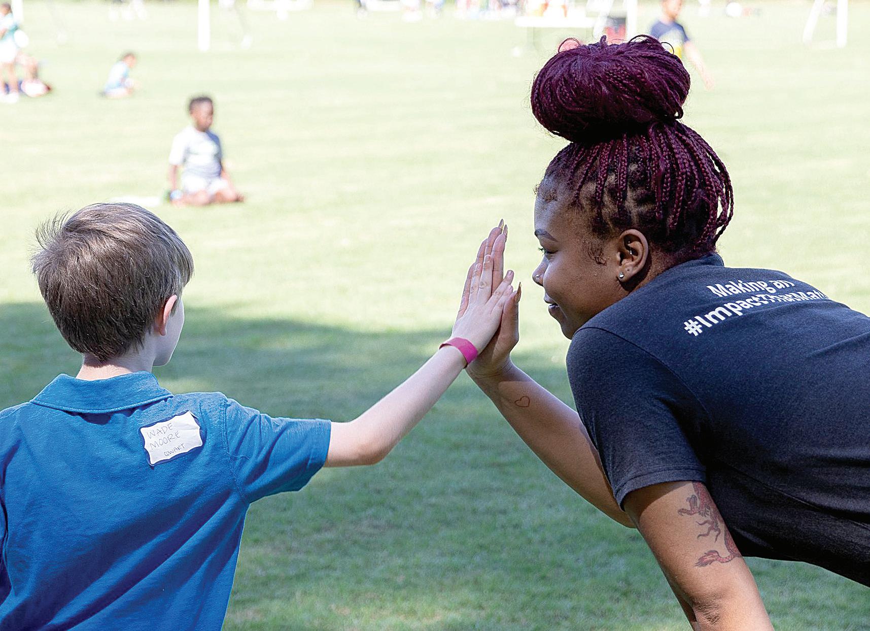 The Y began as an entirely volunteerdriven organization, and today, volunteers remain integral to its mission. They serve in diverse roles, from coaching sports teams and mentoring teens to assembling hygiene kits for homeless families. For volunteers, the experience is deeply rewarding. Lynn B. reflects, “What I volunteered to do was only a small portion of what was needed to make this a successful project. It’s truly a collaborative effort by so many people.” Another volunteer, Brian W., said, “I felt soccer helped bring all of the kids together to help community relations.”