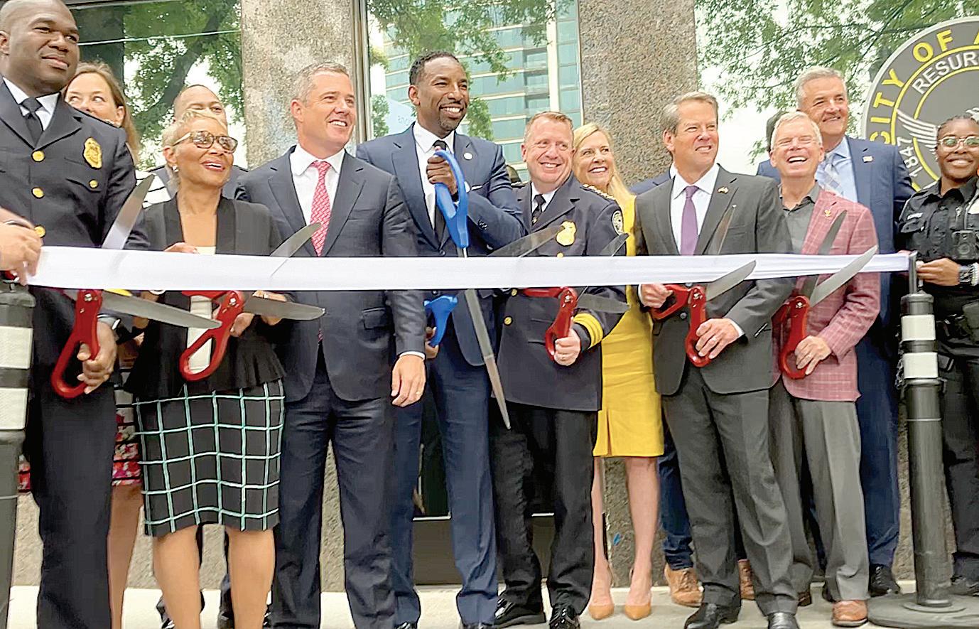 City officials at the ribbon cutting for APD’s Buckhead precinct.