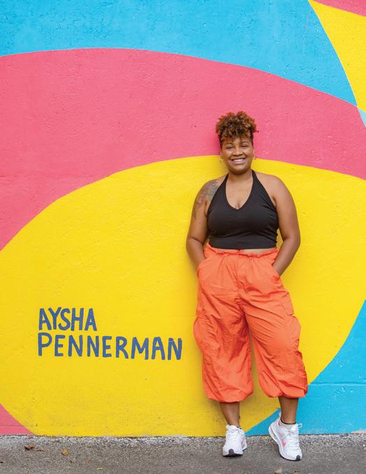 Artist Aysha Pennerman stands next to one of her murals at Harper-Archer Middle School in northwest Atlanta. Turn to page 6 to read more about Pennerman’s work. (Photo by Isadora Pennington)