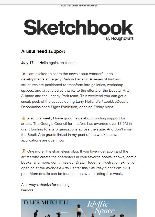 Knowing that you’re sitting down with your cup of coffee and spending a few minutes to catch up on all things ATL is what keeps me motivated. If you haven’t subscribed to Rough Draft or one of our other titles, visit roughdraftatlanta. com/newsletters.