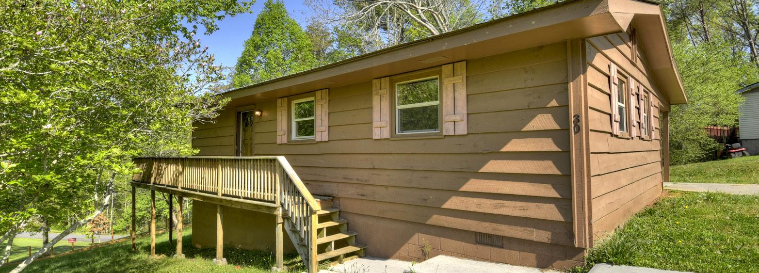 above babbling Dukes Creek. Enjoy hiking and fly-fishing right outside your cabin door.