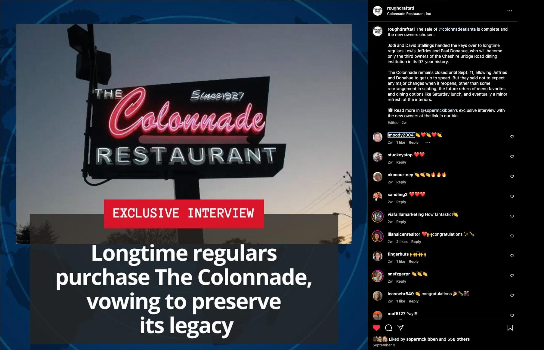 When asked why they think generations of Atlantans continue to dine at The Colonnade, Jeffries simply stated that the restaurant offers people consistency and comfort. It’s a constant in many people’s lives, often tied to their family histories which provides the touchstone or connection to loved ones and times gone by.